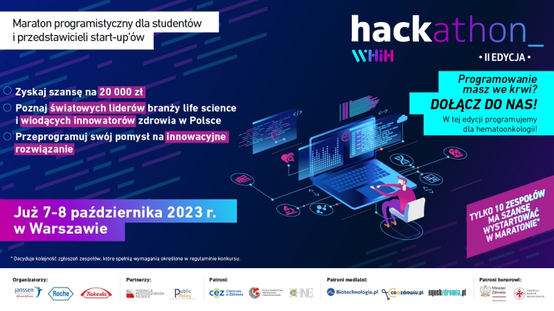 W obliczu współczesnych wyzwań ochrony zdrowia i możliwych ich rozwiązań płynących z rozwoju cyfryzacji, firmy Janssen Polska, Roche Polska we współpracy z Federacją Przedsiębiorców Polskich zainicjowały pod auspicjami Warsaw Health Innovation Hub maraton programistyczny e-Health Hackathon. Do grona organizatorów II edycji dołączyła także firma Takeda Pharma.