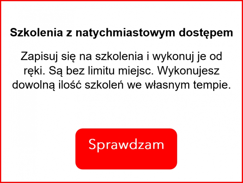 - szkolenia z natychmiastowym dostępem dla każdego powyżej 16 roku życia,